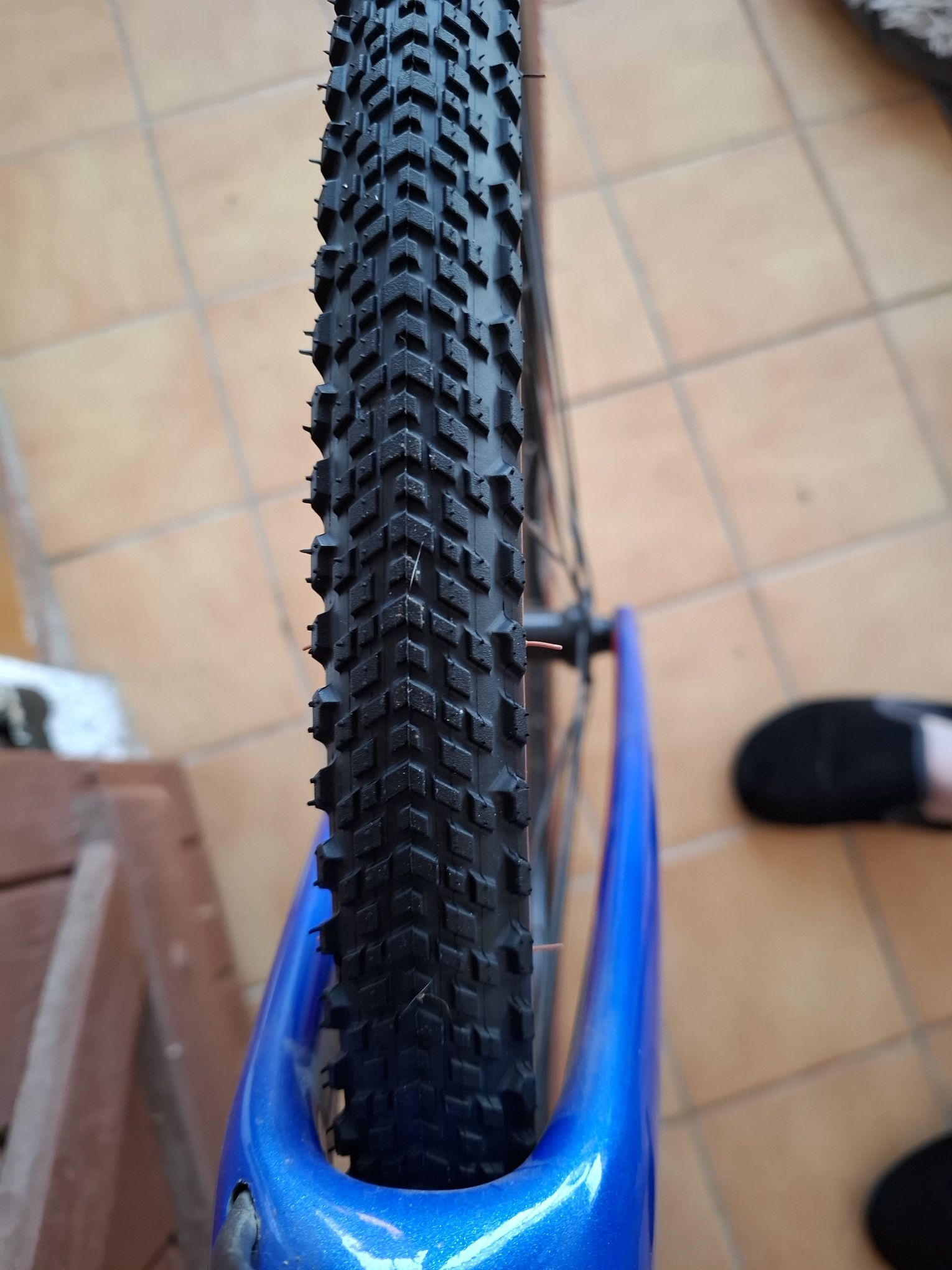 Heureusement, mon cadre est conçu pour le bikepacking. En conséquence, j’ai de l’espace entre les haubans. Je ne suis pas intéressé par la compétition routière ou gravel, je veux juste des pneus durables. Pour mes déplacements avec une certaine distance parcours long et court.