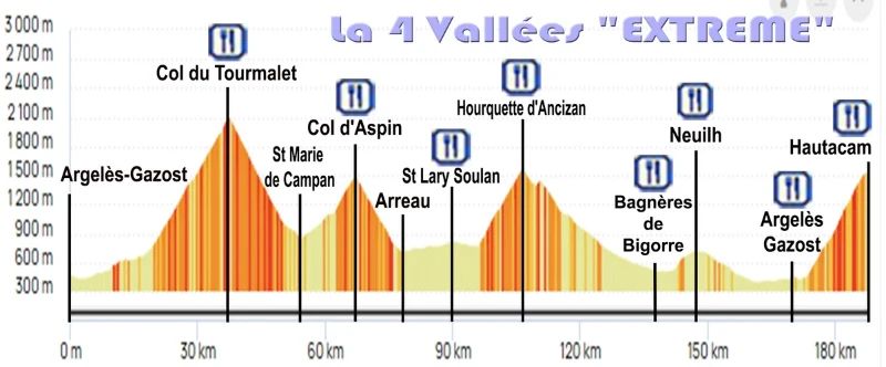 tout le monde y a sa place. Toutefois notre recommandation sera de vous conseiller un minimum de préparation afin que la souffrance, inhérente à l’escalade de grands cols soit maitrisée et non subie, gage de bons souvenirs.Une CycloRando non chronométrée sur des routes de piedmont panoramiques sur la chaine des Pyrénées est également au programme. Tout type de machines dont les VAE sont les bienvenus. Une partie du parcours est commune aux autres avec le même final optionnel pour les plus motivés, permettant une immersion dans l’ambiance cyclosport de la journée. Bruno Armirail sera toujours notre fidèle parrain mais nous croyons seulement par la pensée car occupé sur le TDF : c’est tout le mal que nous lui souhaitons…« Vivre le Vélo au Féminin » sera incarné par Emilie qui animera le peloton de la CycloRando de toute son énergie communicative ! Merci à elle par avance.L’épreuve sera toujours au TLO national FFC, au Trophée des Cyclosportives d’Occitanie et en duo au Challenge Béarn/Bigorre avec la Matthieu Ladagnous.Le samedi verra Argelès-Gazost animé pour l’occasion lors de l’accueil et du retrait des dossards.Prévu pour chaque inscription : le maillot collector (sur les parcours chronométrés), le dossard personnalisé, le repas chaud assis d’après course, la tombola, des ravitaillements (solide et liquide) au sommet de chaque col, l’épreuve en LIVE sur grand écran. Comme à chaque fois nous aurons à cœur de vous recevoir de la meilleure des façons.Le Cyclosport doit être la fête du vélo où le sportif se conjugue avec le bien vivre ensemble toutes et tous autour de notre passion commune.Nous comptons sur vous pour écrire une nouvelle page decette épreuve unique entre Argelès-Gazost, Bagnères-de-Bigorre et St Lary-Soulan : ce sera la 19ème