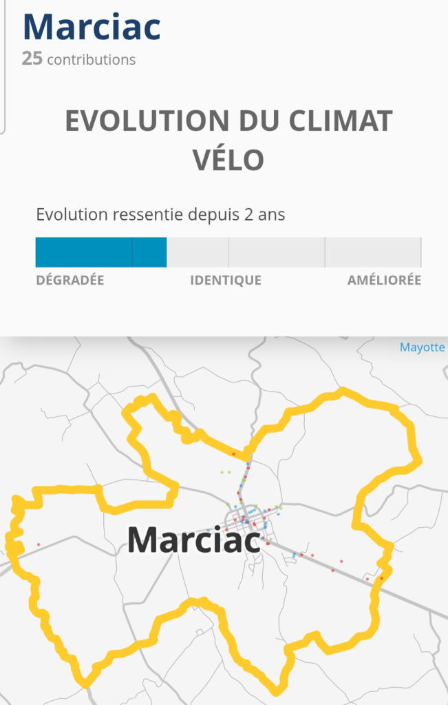 Je ne suis pas surpris des résultats pour la commune de Marciac pour la sécurité vélo et dans le Gers, nous ne sommes pas les seuls.
